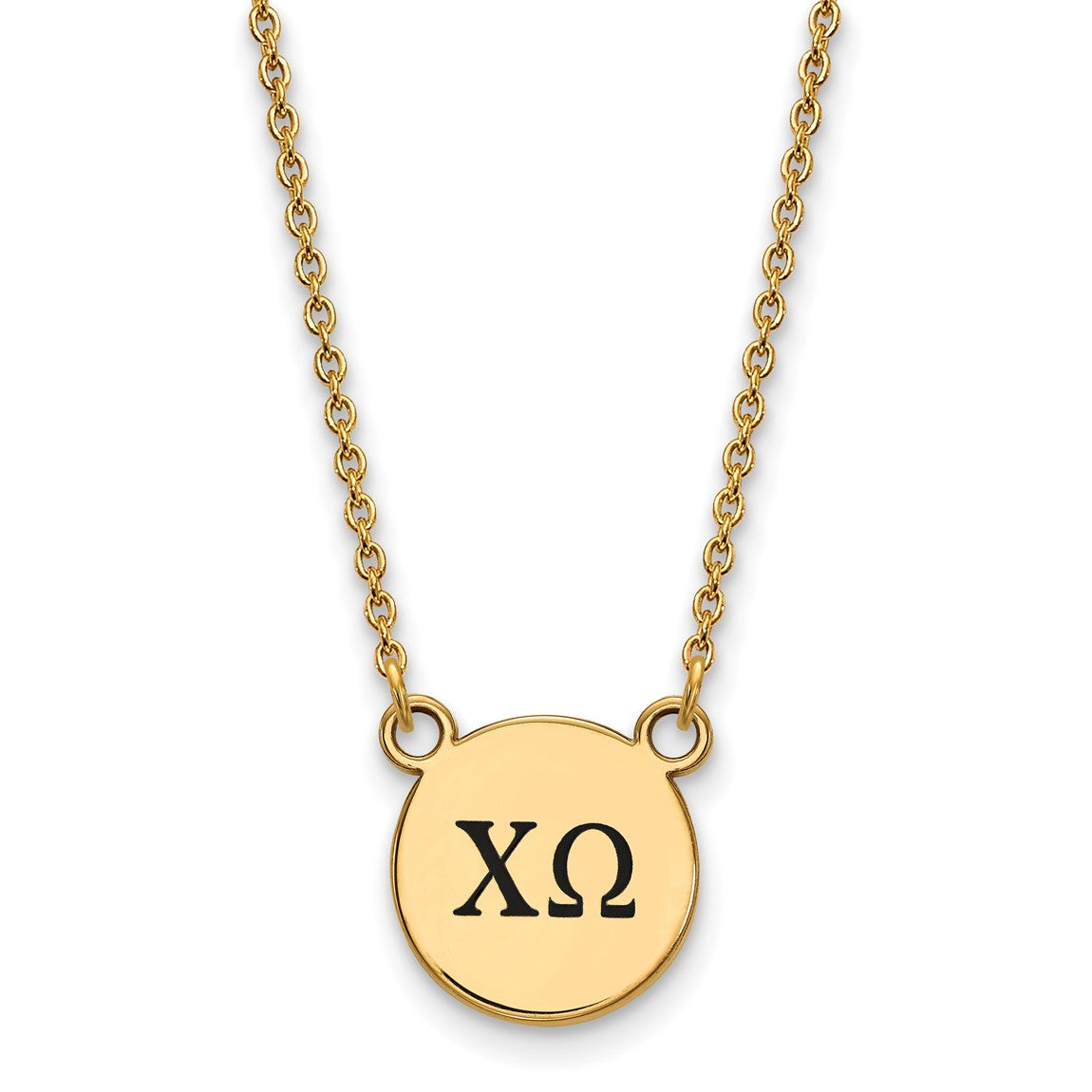 Sterling Silver Gold-plated LogoArt Chi Omega Sorority Greek Letters Small Black Enamel Pendant 18 inch Necklace