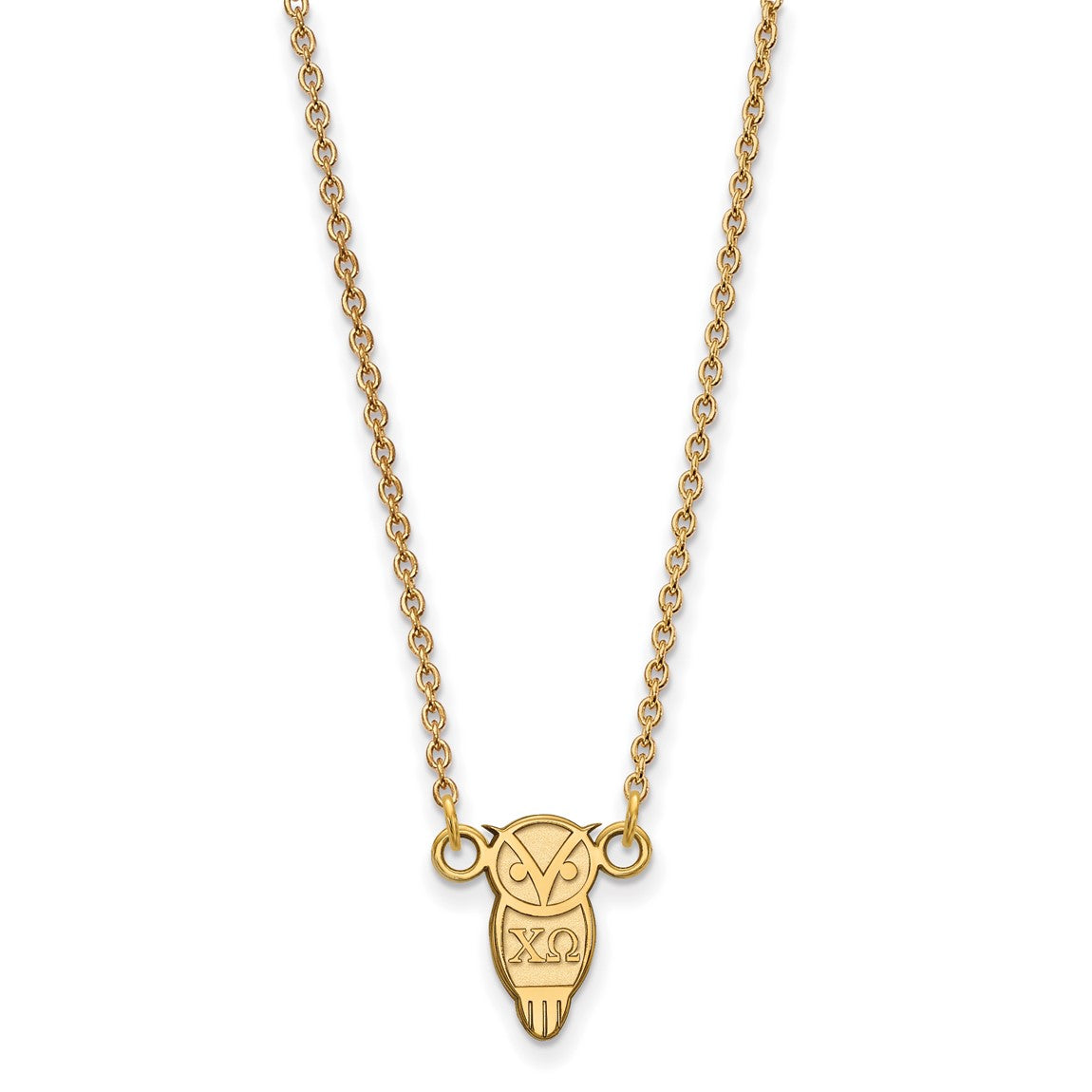 Sterling Silver Gold-plated LogoArt Chi Omega Sorority Symbol Extra Small Pendant 18 inch Necklace