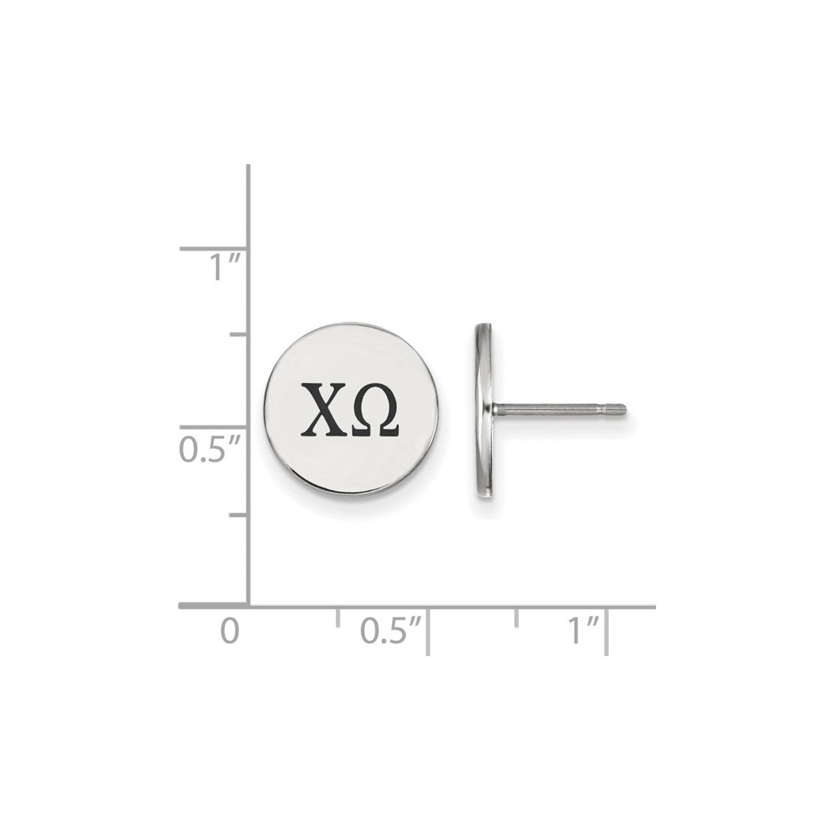 Sterling Silver Rhodium-plated LogoArt Chi Omega Sorority Greek Letters Black Enamel Post Earrings