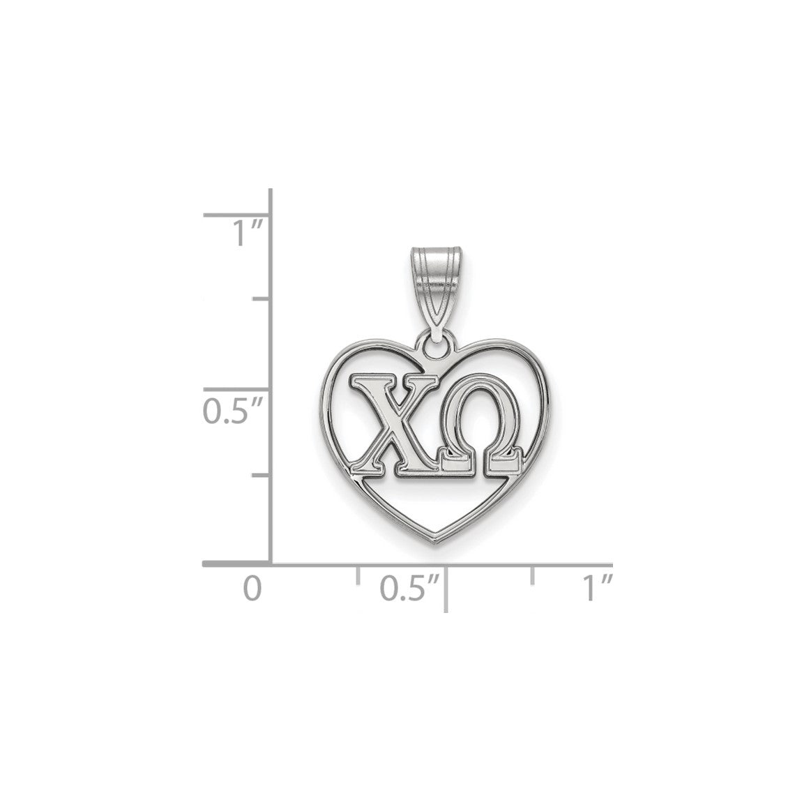 Sterling Silver Rhodium-plated LogoArt Chi Omega Sorority Greek Letters Heart Pendant
