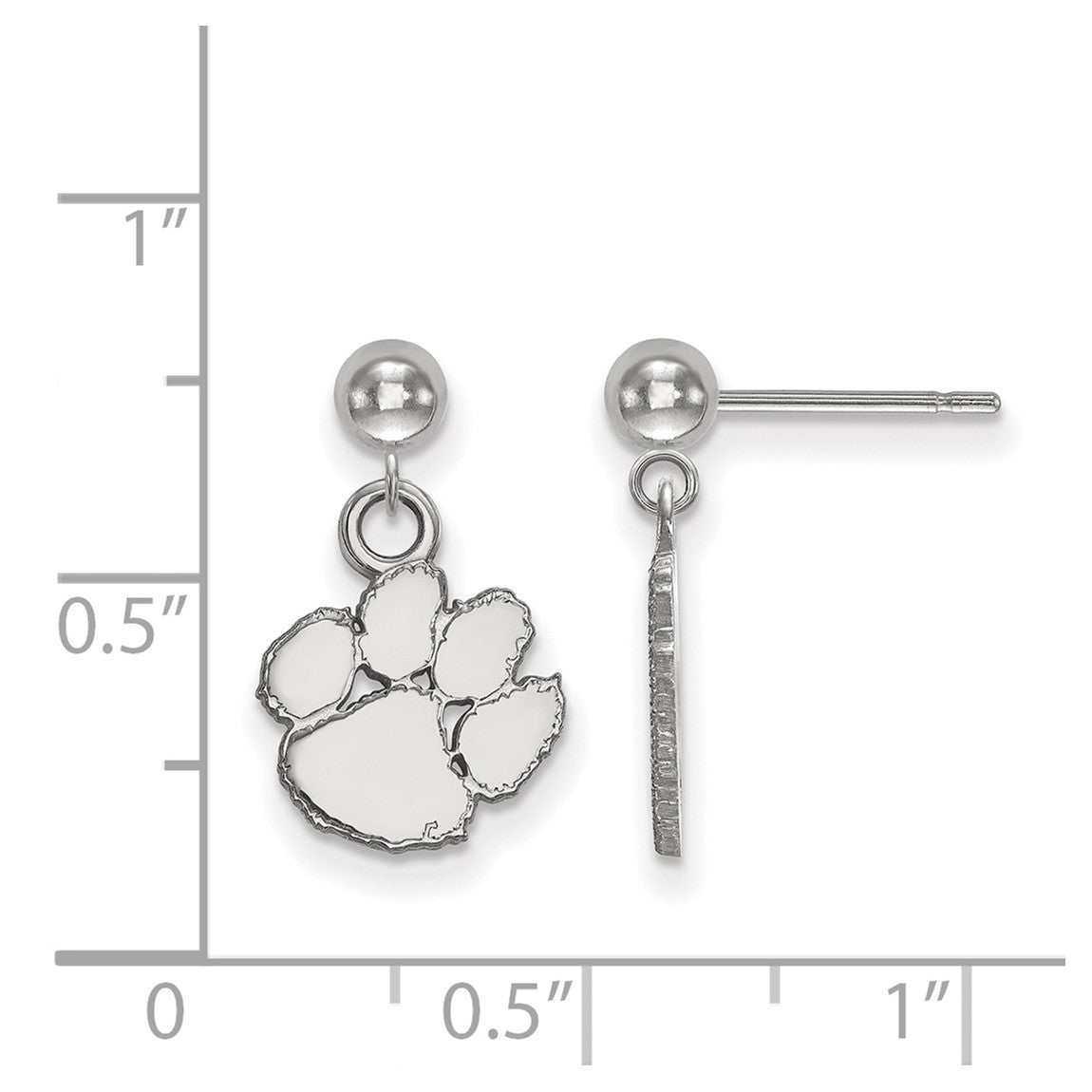 14k White Gold LogoArt Clemson University Tiger Paw Dangle Ball Post Earrings