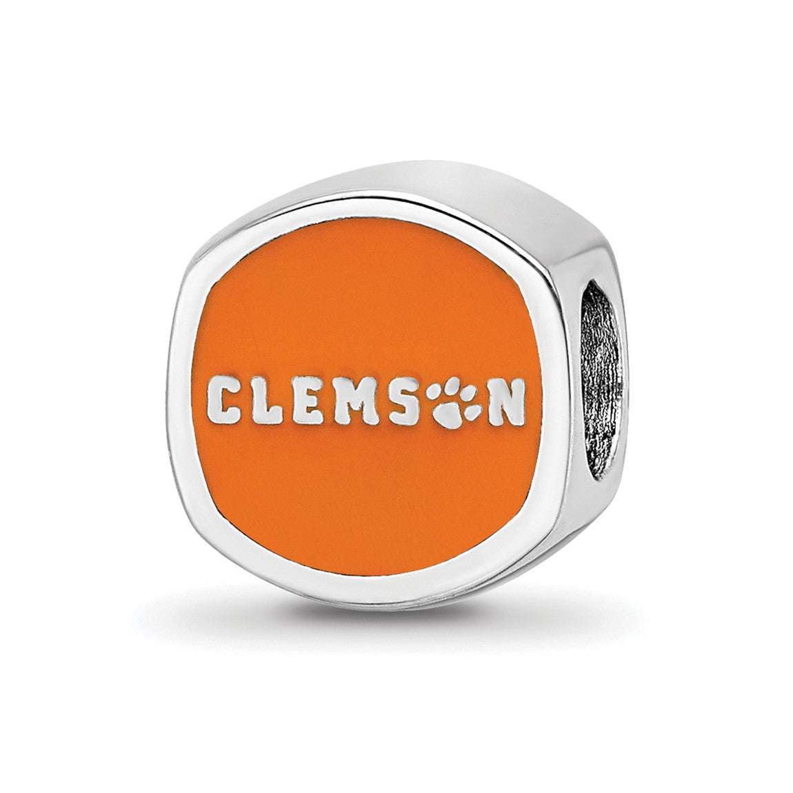 Sterling Silver Rhodium-plated LogoArt Clemson University Tiger Paw Enameled Bead