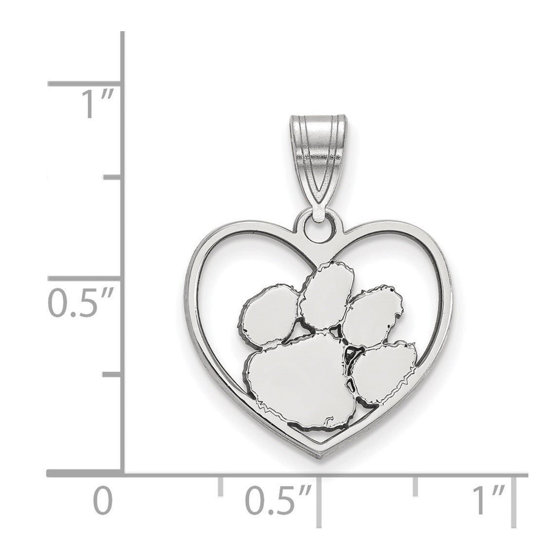 Sterling Silver Rhodium-plated LogoArt Clemson University Tiger Paw Heart Pendant