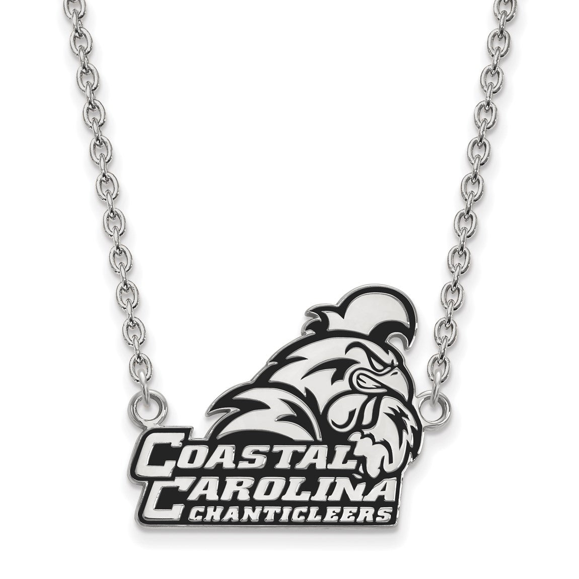 Sterling Silver Rhodium-plated LogoArt Coastal Carolina University Chanticleers Large Enameled Pendant 18 inch Necklace