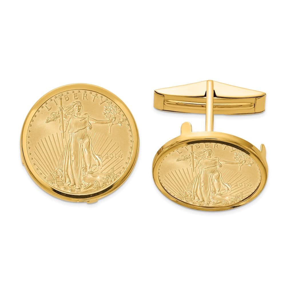14k Gold Polished Plain Mounted 1/10oz American Eagle Coin Bezel Cuff Links