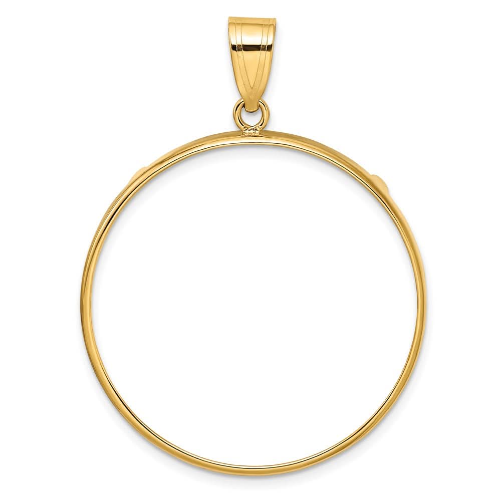 10k Yellow Gold Polished 32.7mm Prong Coin Bezel Pendant - Fits 1 oz American Eagle, 1 oz Cat, and 1 oz Krugerrand