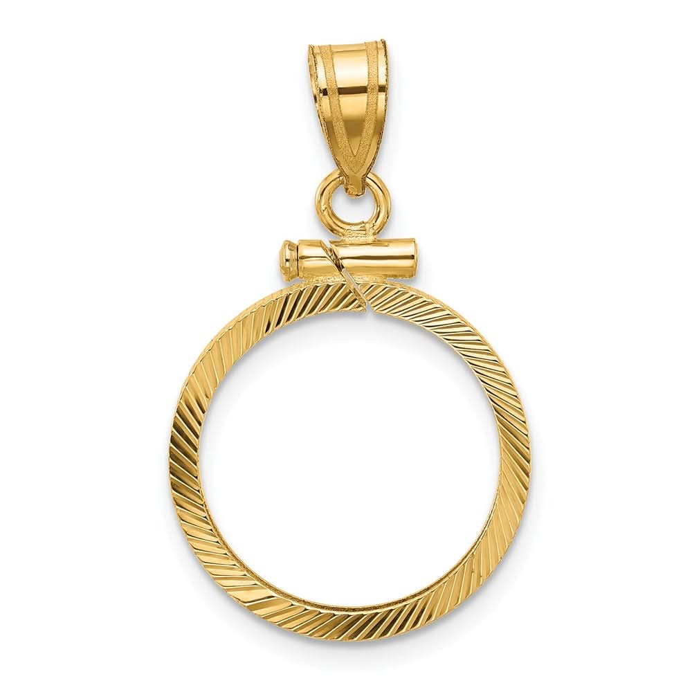10k Yellow Gold Polished and Diamond-cut 16.5mm x 1.35mm Screw Top Coin Bezel Pendant - Fits 1/10 oz American Eagle and 1/10 oz Krugerrand