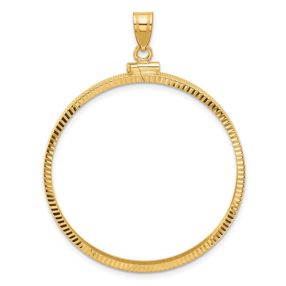10k Yellow Gold Polished and Diamond-cut 37.0mm x 2.85mm Screw Top Coin Bezel Pendant - Fits 50 Pesos and Centenario