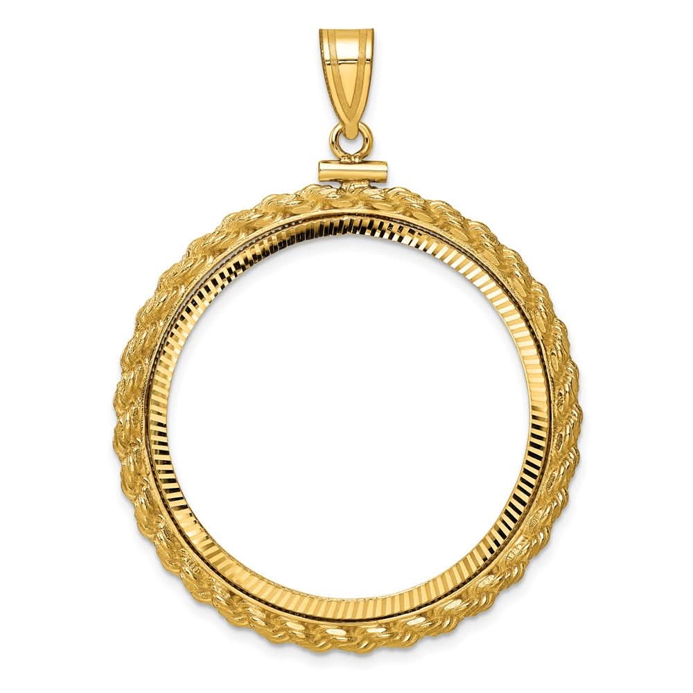 10k Yellow Gold Polished and Diamond-cut Casted Rope 32.7mm x 3.00mm Screw Top Coin Bezel Pendant - Fits 1 oz American Eagle, 1 oz Cat, and 1 oz Krugerrand