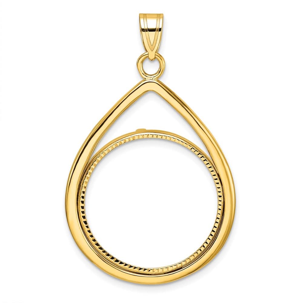 10k Yellow Gold Polished and Diamond-cut Lightweight Teardrop 22.0mm Prong Coin Bezel Pendant - Fits 1/4 oz American Eagle and Other Coins