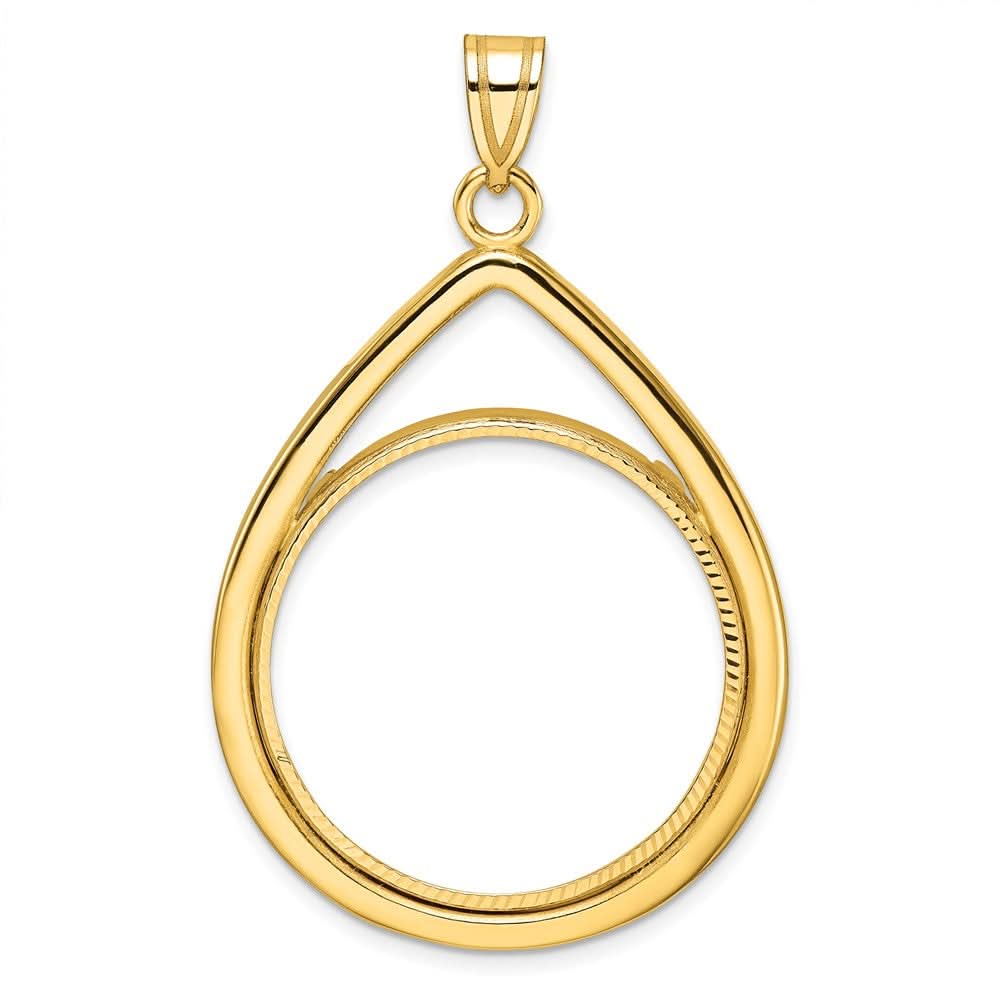 10k Yellow Gold Polished and Diamond-cut Lightweight Teardrop 27.0mm Prong Coin Bezel Pendant - Fits 1/2 oz American Eagle, US $10 Liberty, and Other Coins