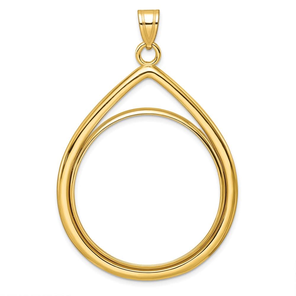 10k Yellow Gold Polished Lightweight Teardrop 32.7mm Prong Coin Bezel Pendant - Fits 1 oz American Eagle, 1 oz Cat, and 1 oz Krugerrand