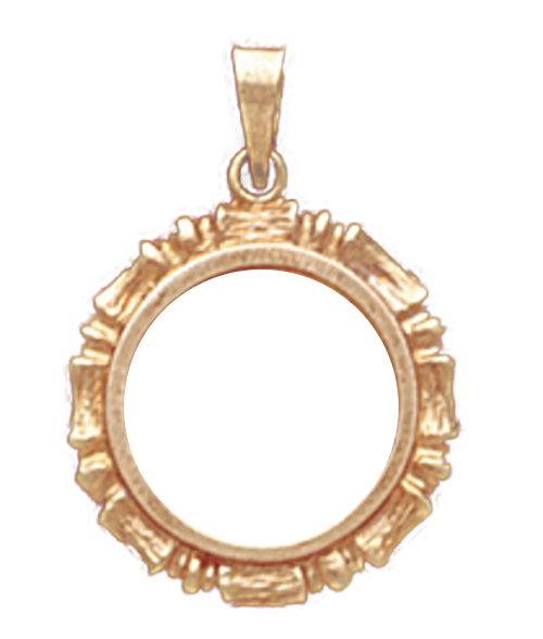 14K Gold BAMBOO Bezel Pendant (Coin not included). Will hold a 14 mm coin.