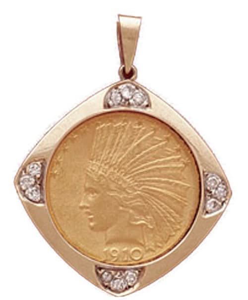 This bezel is designed to showcase your impeccable taste and refined sense of fashion. The bezel fits: 1/2 oz American Eagle, US $10 Liberty, US $10 Indian, 1/2 oz Panda.