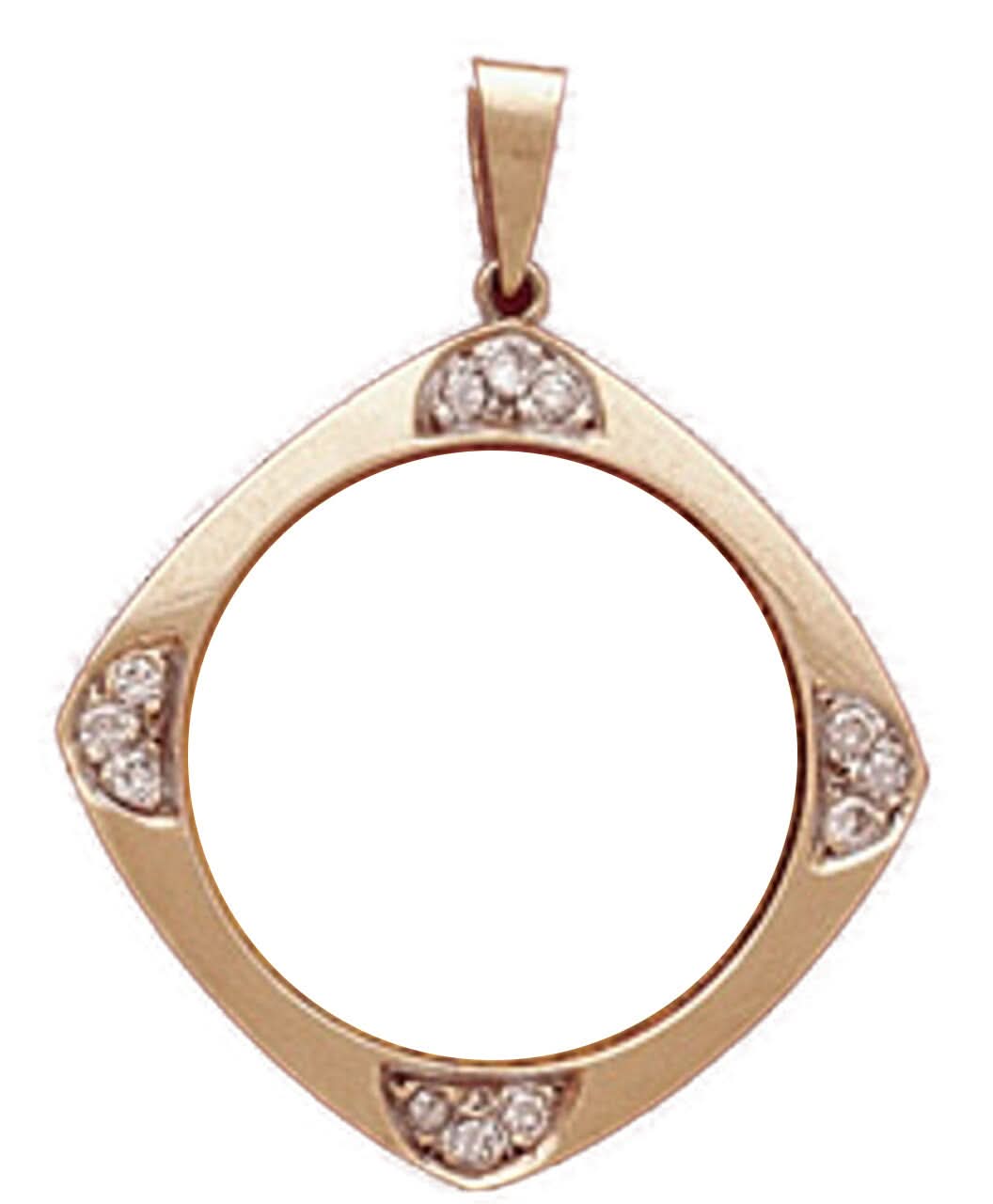 14K Gold Bezel  DIAMOND CUSHION  Pendant (Coin not included). Will hold a 27 mm coin.