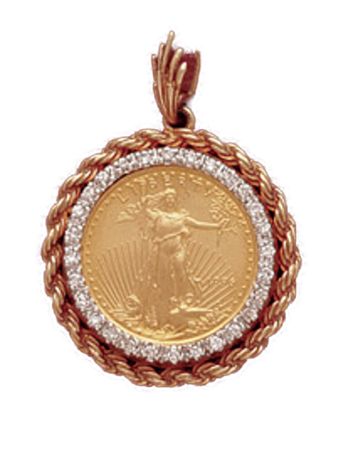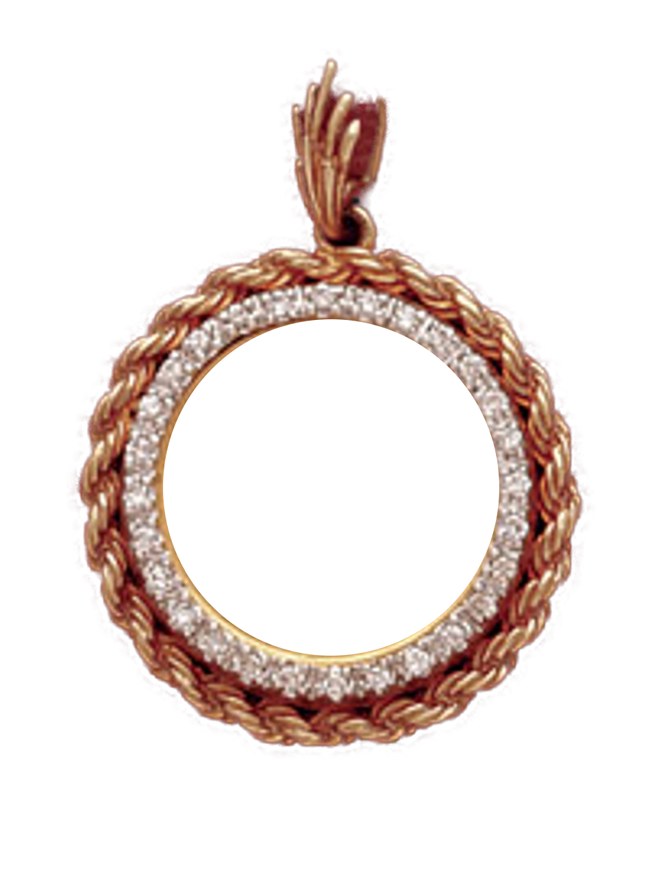 14K Gold Bezel  DIAMOND ROPE Pendant  (Coin not included). Will hold a 22 mm coin.
