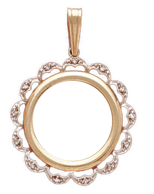 14K Gold Bezel  DIAMOND WAVE BEZEL  Pendant  (Coin not included). Will hold a 22 mm coin.