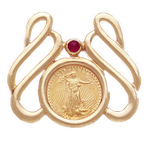 14K Yellow Gold 14K l FANCY RUBY SLIDE Bezel Pendant (Coin not included). Will hold a 16.5 mm coin.
