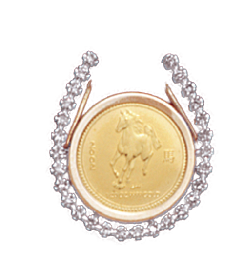 14K Gold DIAMOND HORSESHOE Bezel Pendant (Coin not included). Will hold a 14 mm coin.