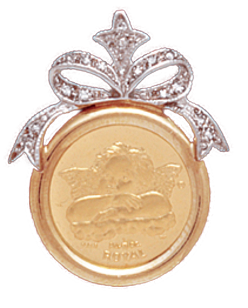 14K Gold DIAMOND RIBBON SLIDE Bezel Pendant (Coin not included). Will hold a 18 mm coin.