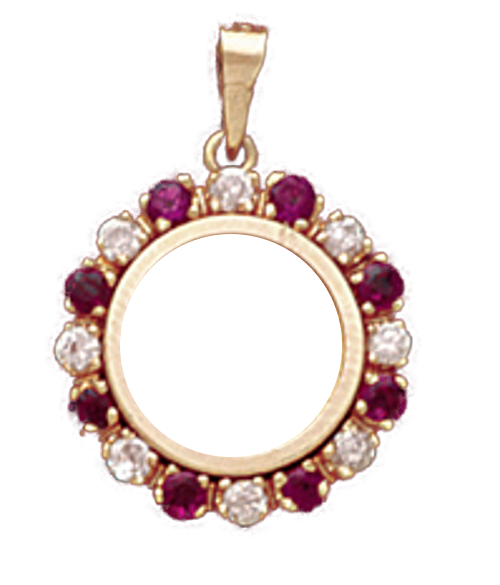 14K Gold DIAMOND / RUBY Bezel Pendant (Coin not included). Will hold a 14 mm coin.