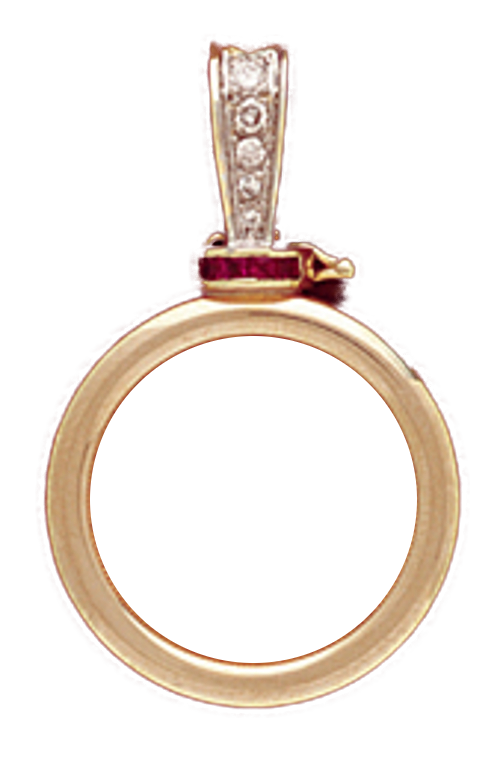 14K Gold Bezel DIAMOND - RUBY ENHANCER Pendant  (Coin not included). Will hold a 22 mm coin.