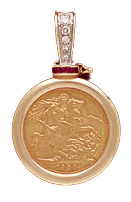 The bezel fits: 1/4 oz American Eagle, US $5 Jamestown, 1/4 oz Panda, 2 Rand, 1 Pound Sovereign, 1/5 oz Isle of Man Cat .