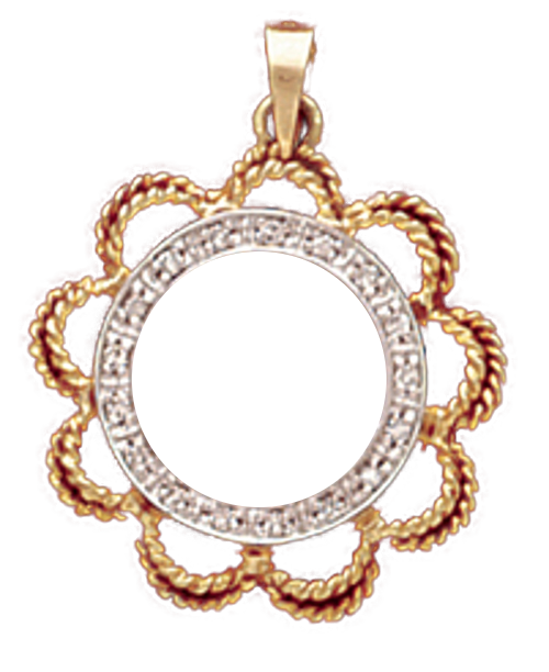 14K Gold DIAMOND SCALLOP Bezel Pendant (Coin not included). Will hold a 14 mm coin.