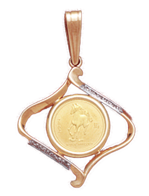 14K Gold DIAMOND SWIRL Bezel Pendant (Coin not included)