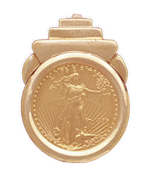 The bezel fits: 1/4 oz American Eagle, US $5 Jamestown, 1/4 oz Panda, 2 Rand, 1 Pound Sovereign, 1/5 oz Isle of Man Cat .