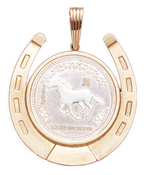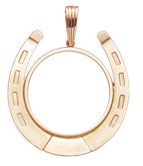 14K Gold LARGE HORSESHOE Bezel Pendant (Coin not included). Will hold a 32.1 mm coin.