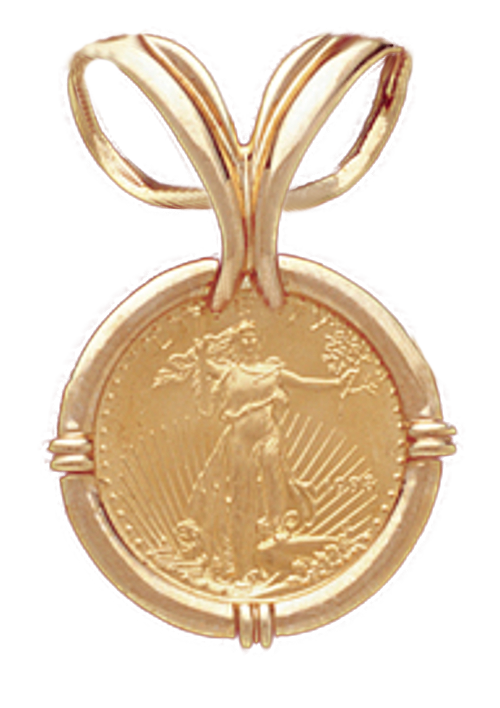 The bezel fits: 1/4 oz American Eagle, US $5 Jamestown, 1/4 oz Panda, 2 Rand, 1 Pound Sovereign, 1/5 oz Isle of Man Cat .