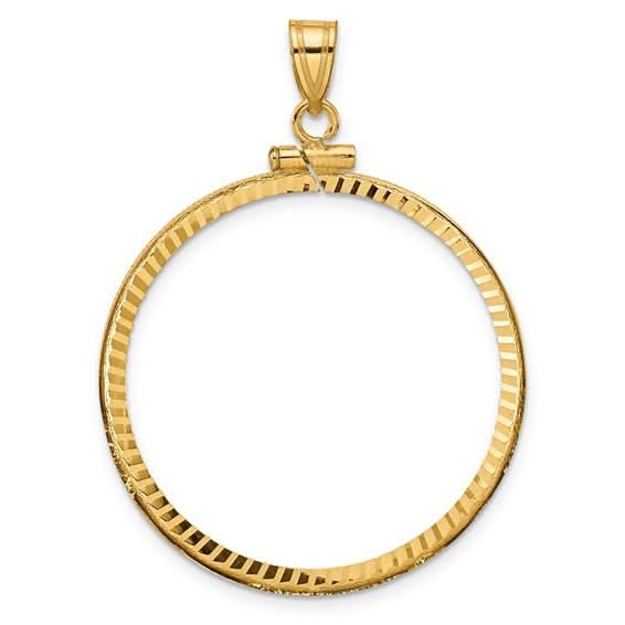 14k Polished and Diamond-cut 32.0mm x 2.85mm Screw Top Coin Bezel Pendant - Fits 1 oz Australian Nugget, 1 oz Kangaroo, 1 oz Panda, and Other Coins