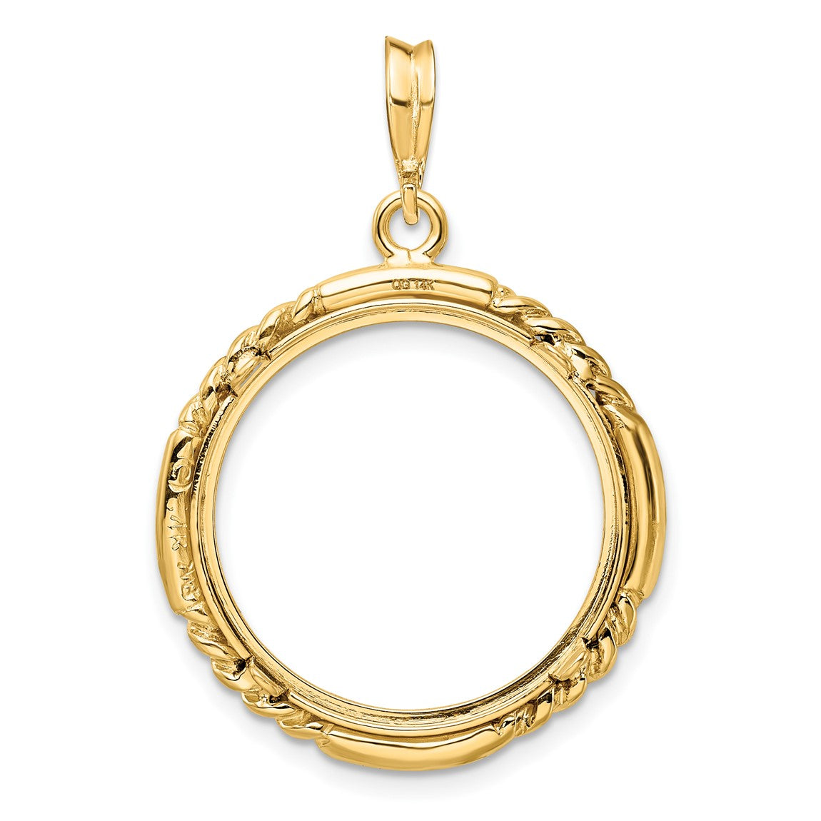 14k Polished Quadruple Twist and Bright 20.0mm Prong Coin Bezel Pendant - Fits 1/4 oz Kangaroo