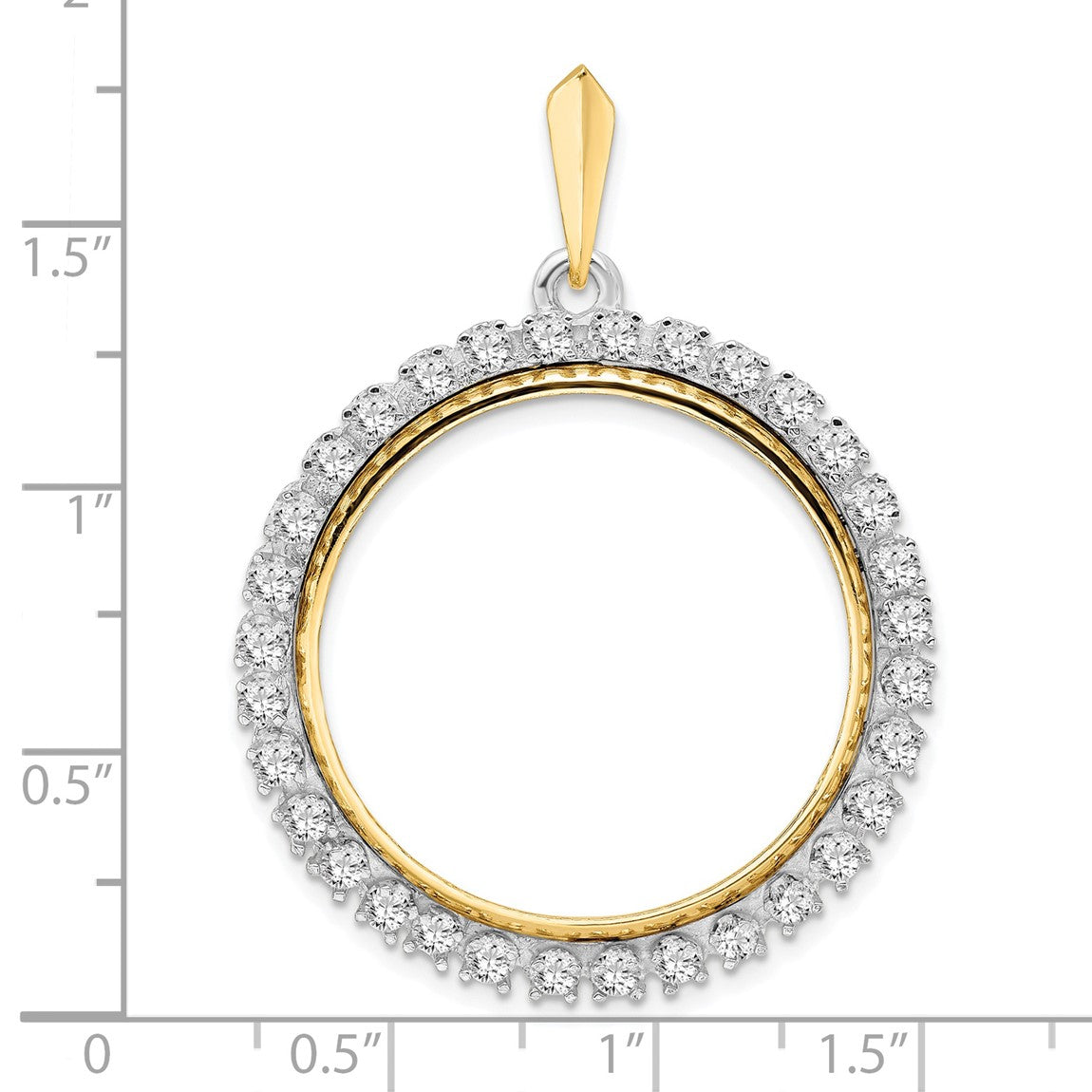 14k Two-tone Gold A Diamond 27mm Prong Coin Bezel Pendant - Fits 1/2 oz American Eagle, US $10 Liberty, and Other Coins