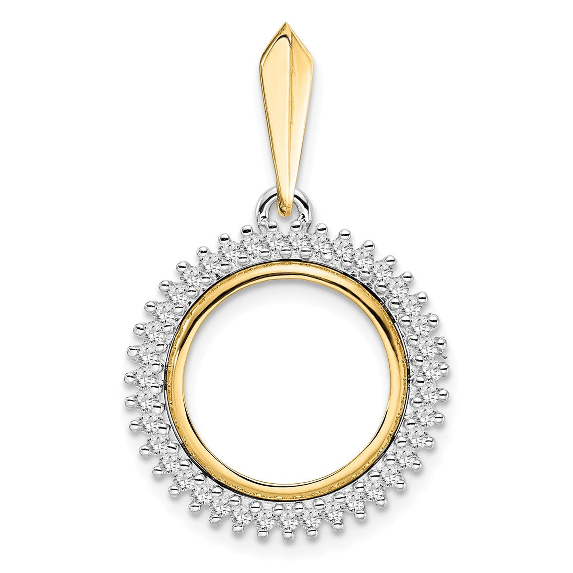 14k Two-tone Gold A Diamond Circle 14mm Prong Coin Bezel Pendant 2006 - Fits 1/20 oz Maple Leaf and Other Coins