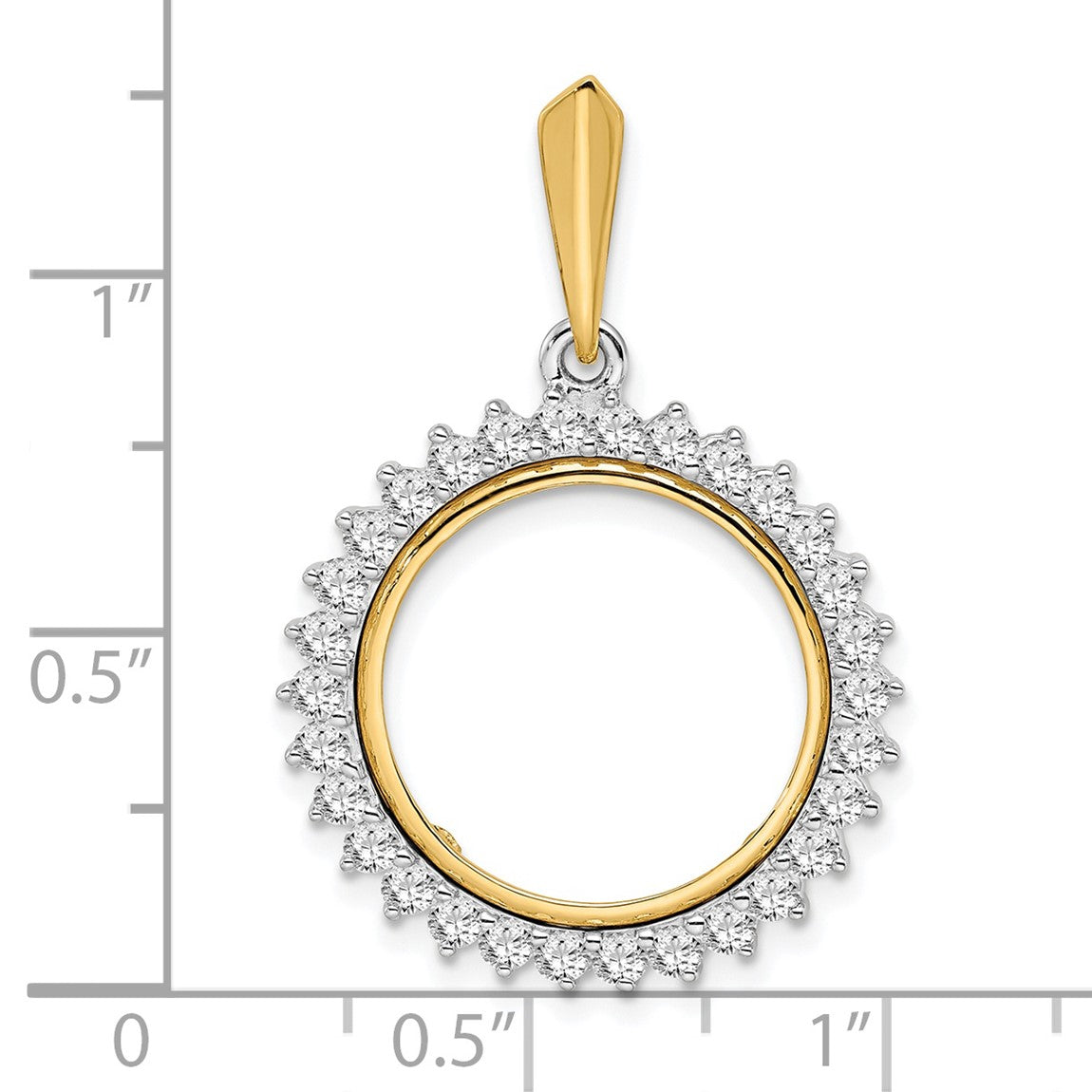 14k Two-tone Gold A Diamond Circle 16.5mm Prong Coin Bezel Pendant - Fits 1/10 oz American Eagle and 1/10 oz Krugerrand