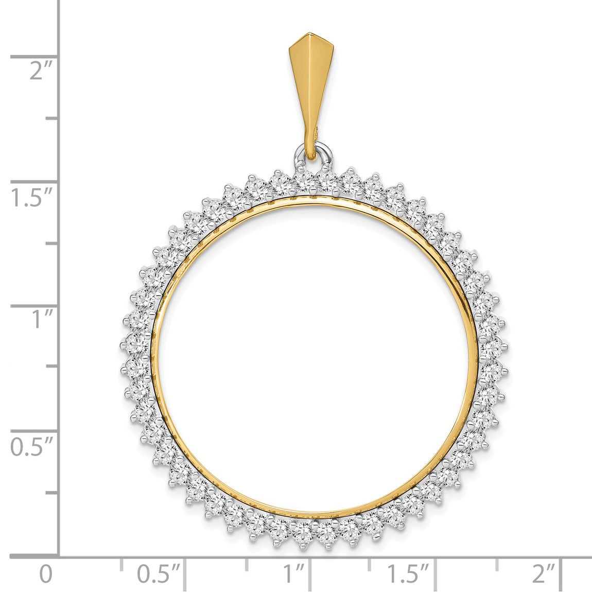 14k Two-tone Gold A Diamond Circle 32.7mm Prong Coin Bezel Pendant - Fits 1 oz American Eagle, 1 oz Cat, and 1 oz Krugerrand