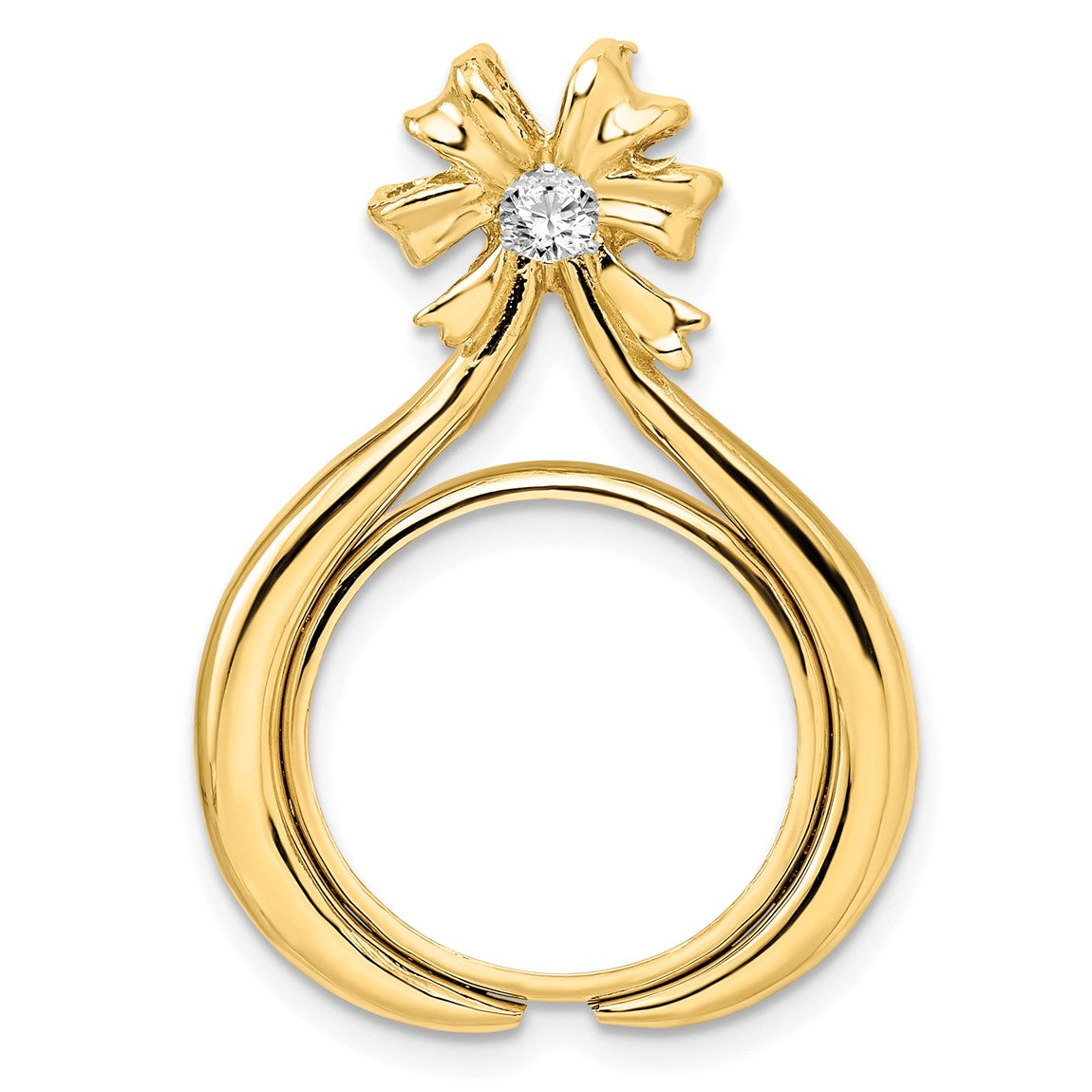 14k Two-tone Gold A Diamond Teardrop Bow 16.5mm Coin Bezel Pendant - Fits 1/10 oz American Eagle and 1/10 oz Krugerrand