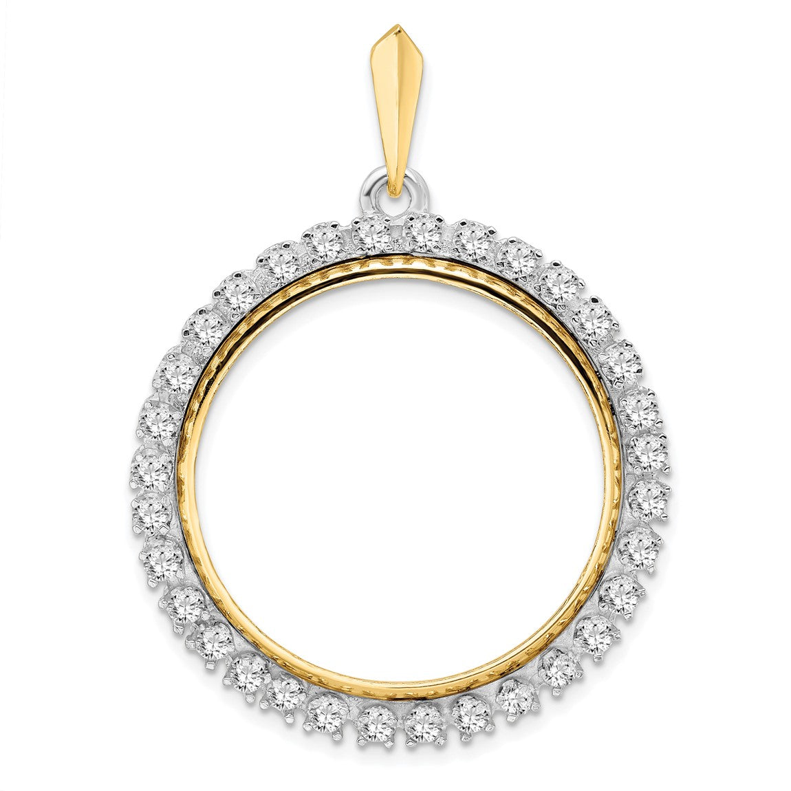 14k Two-tone Gold AA Diamond 27mm Prong Coin Bezel Pendant - Fits 1/2 oz American Eagle, US $10 Liberty, and Other Coins