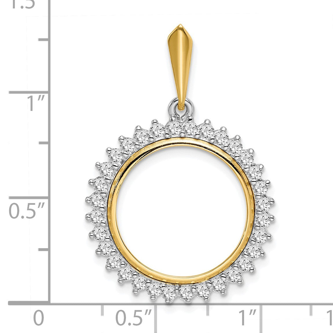 14k Two-tone Gold AA Diamond Circle 18mm Prong Coin Bezel Pendant - Fits 1/10 oz Cat