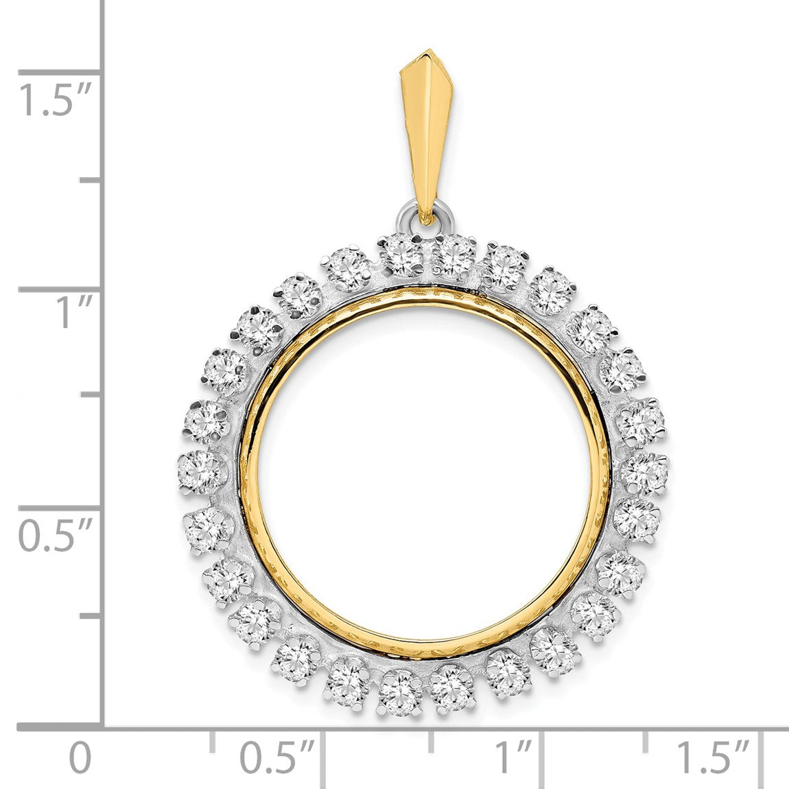 14k Two-tone Gold AAA Diamond 21.6mm Prong Coin Bezel Pendant - Fits US $5 Bald Eagle, US $5 Congressional, US $5 Liberty, and Other Coins