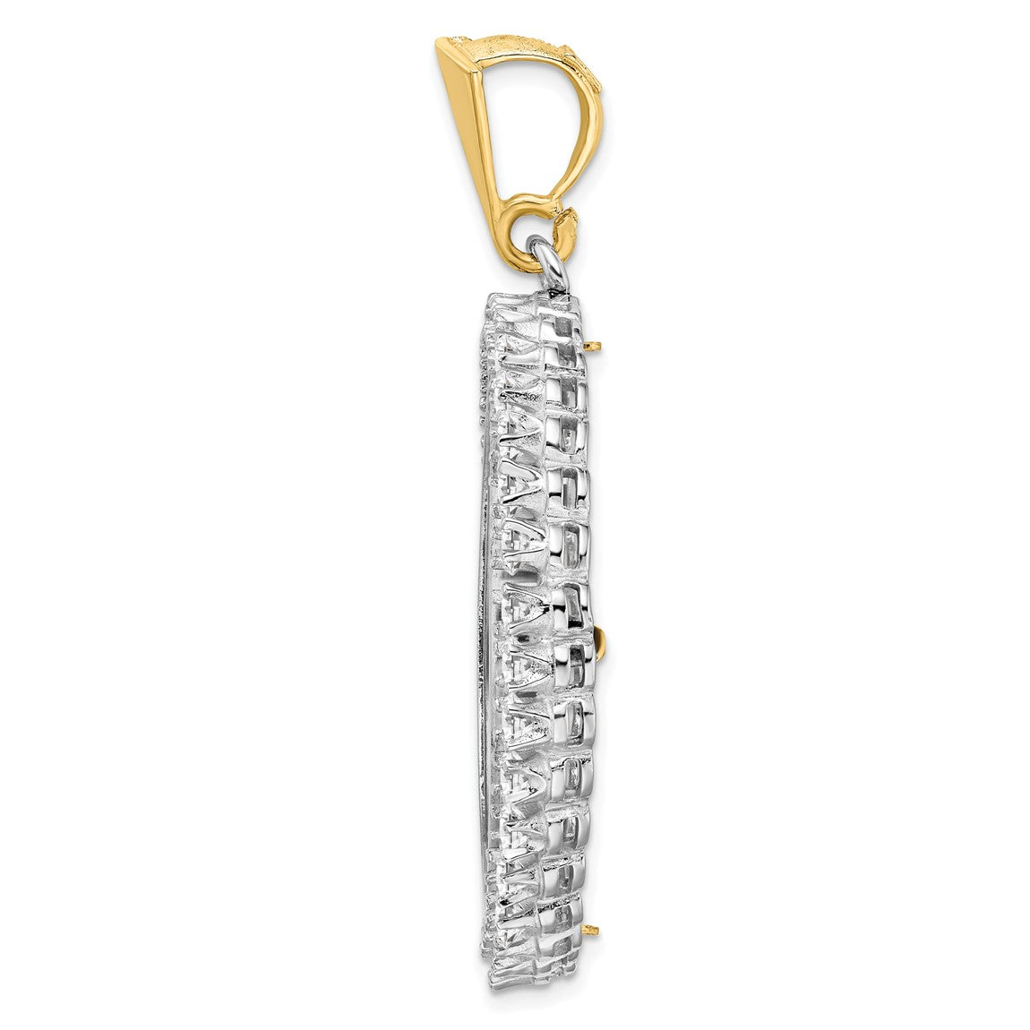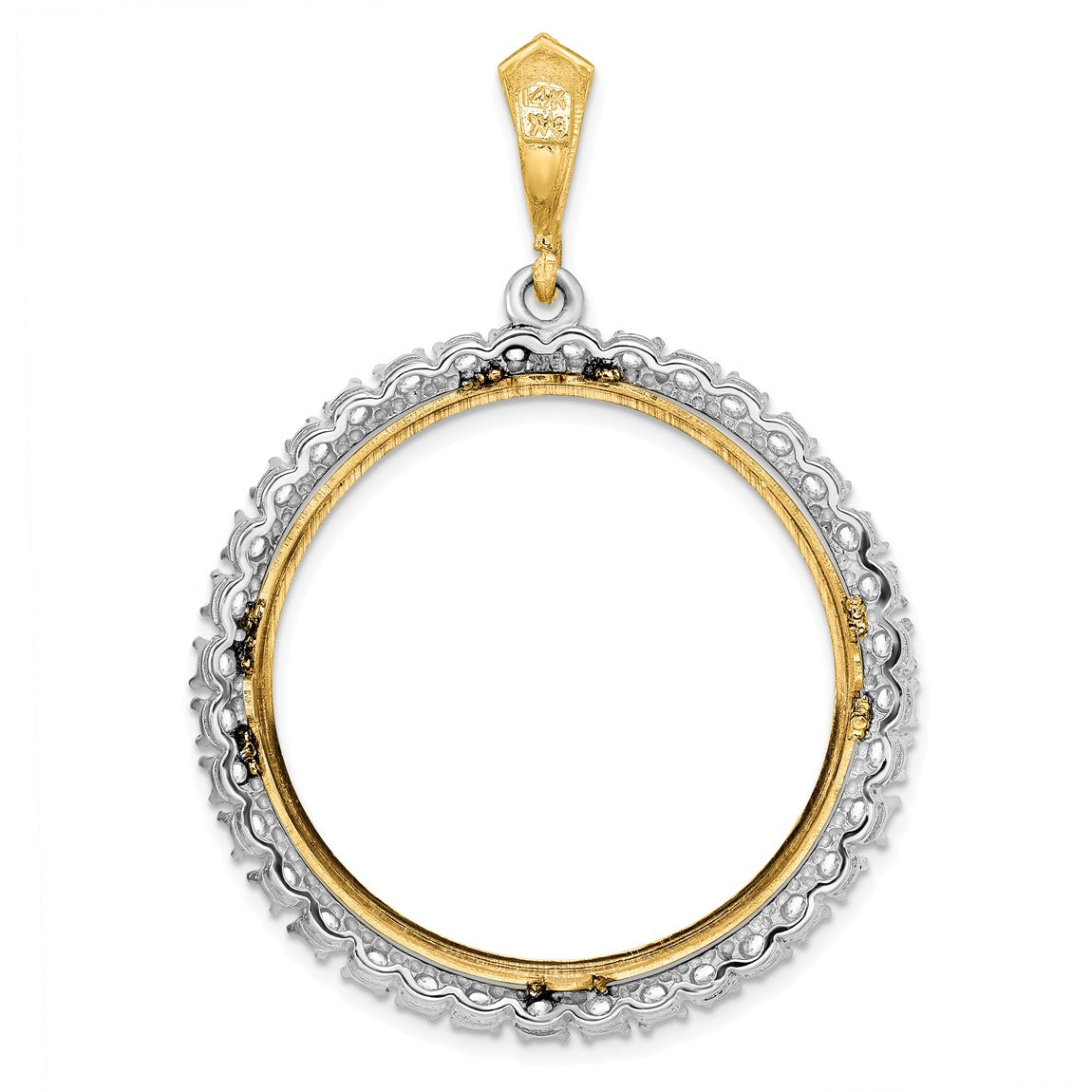 14k Two-tone Gold AAA Diamond 30mm Prong Coin Bezel Pendant - Fits 1 oz Maple Leaf and 1/2 oz Cat