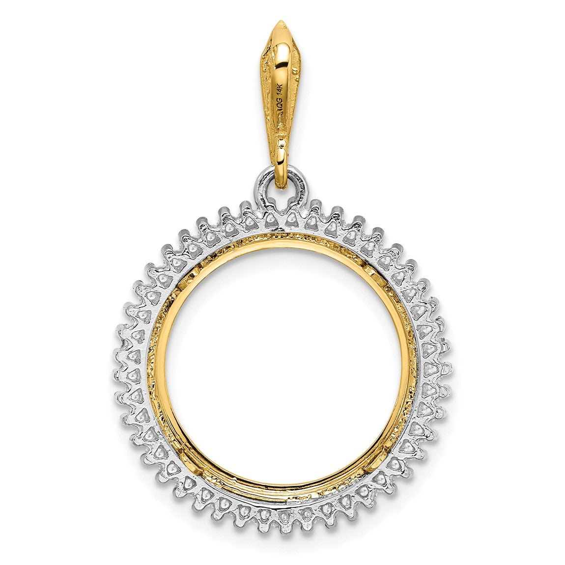 14k Two-tone Gold AAA Diamond Circle Prong 16.5mm Coin Bezel Pendant - Fits 1/10 oz American Eagle and 1/10 oz Krugerrand