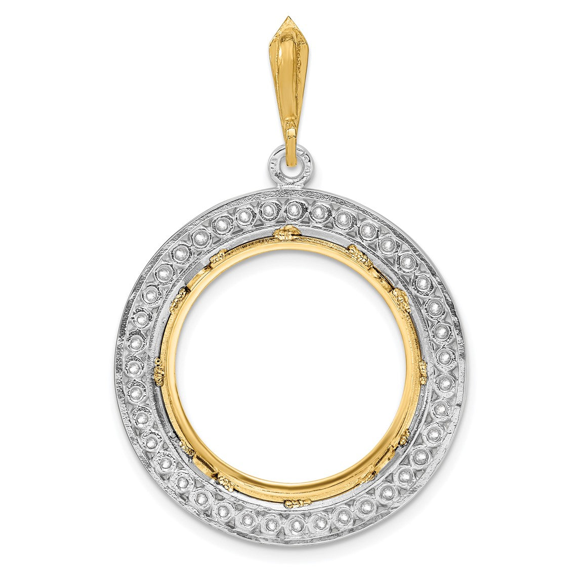 14k Two-tone Gold Channel Set A Diamond 20.1mm Prong Coin Bezel Pendant - Fits 1/4 oz. Gold Nugget, and 1/4 oz. Koala
