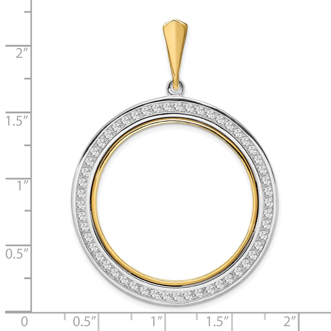 14k Two-tone Gold Channel Set A Diamond 32mm Prong Coin Bezel Pendant - Fits 1 oz Australian Nugget, 1 oz Kangaroo, 1 oz Panda, and Other Coins