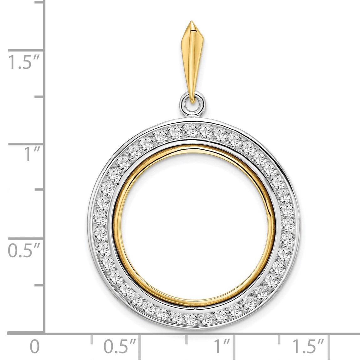 14k Two-tone Gold Channel Set AA Diamond 21.6mm Prong Coin Bezel Pendant - Fits US $5 Bald Eagle and US $5 Congressional