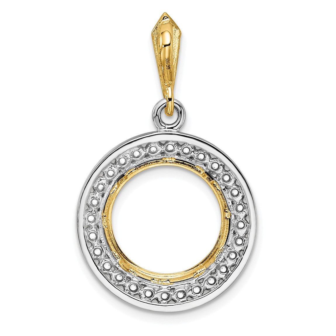 14k Two-tone Gold Channel Set AAA Diamond 13mm Prong Coin Bezel Pendant - Fits 2 Pesos and US $1