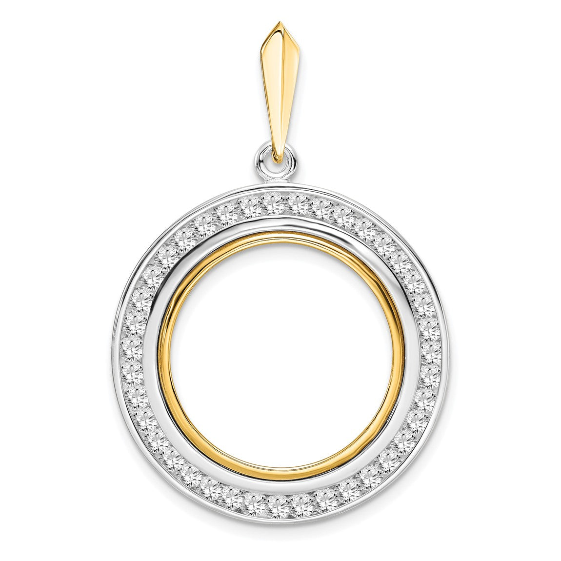 14k Two-tone Gold Channel Set AAA Diamond 20.1mm Prong Coin Bezel Pendant - Fits 1/4 oz. Gold Nugget, and 1/4 oz. Koala