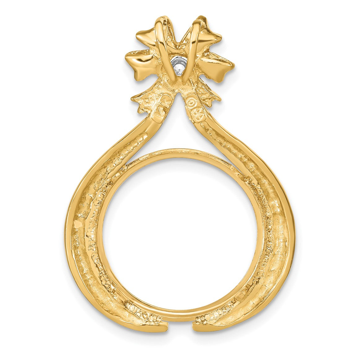 14k Two-tone Gold VS Diamond Teardrop Bow 17.8mm Coin Bezel Pendant - Fits US $2.50 Liberty and Other Coins